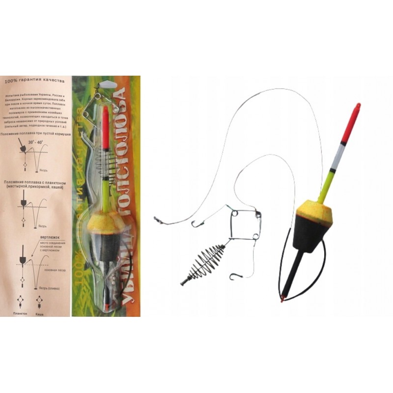 SPECJALNA LINKA O DUŻEJ WYTRZYMAŁOŚCI PRZECHODZI PRZEZ SPŁAWIK O DŁUGOŚCI - 26cm. , NA KOŃCU LINKI ZESTAW DO NĘCENIA - SPRĘŻYNA+ DWA HAKI NA PLECIONCE.