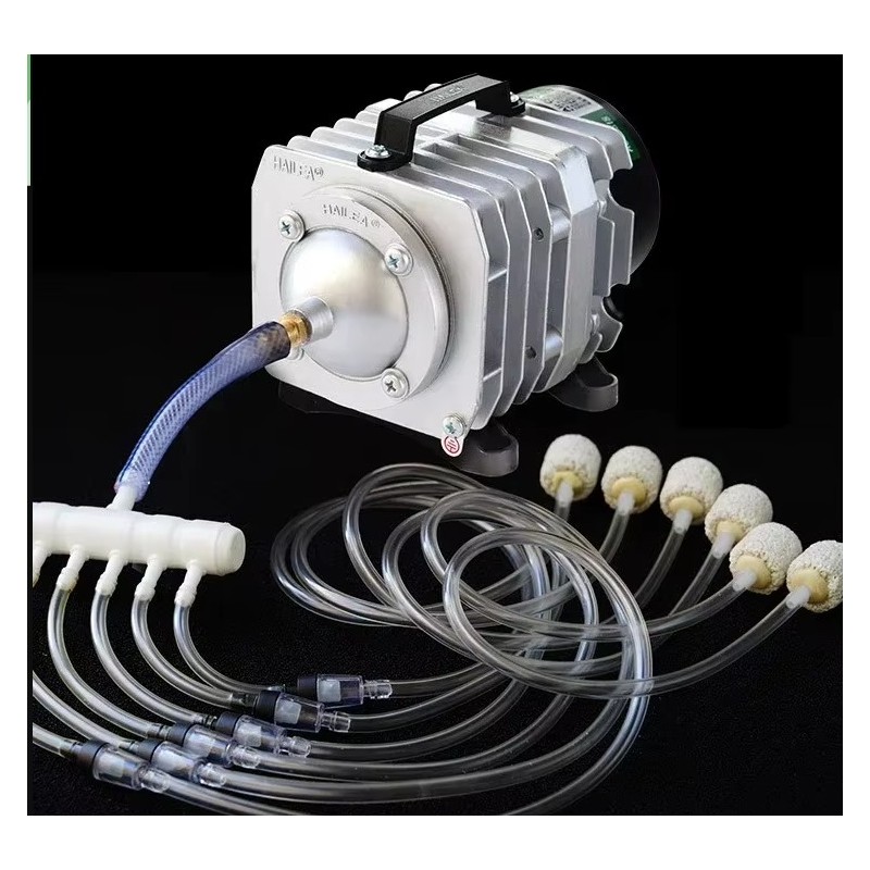Pompa elektromagnetyczna posiada jedno ujście powietrza, które z łatwością da się rozdzielić na kilka strumieni powietrznych za pomocą rozgałęziacza i wężyków podłączonych do dyfuzorów lub kamieni napowietrzających.