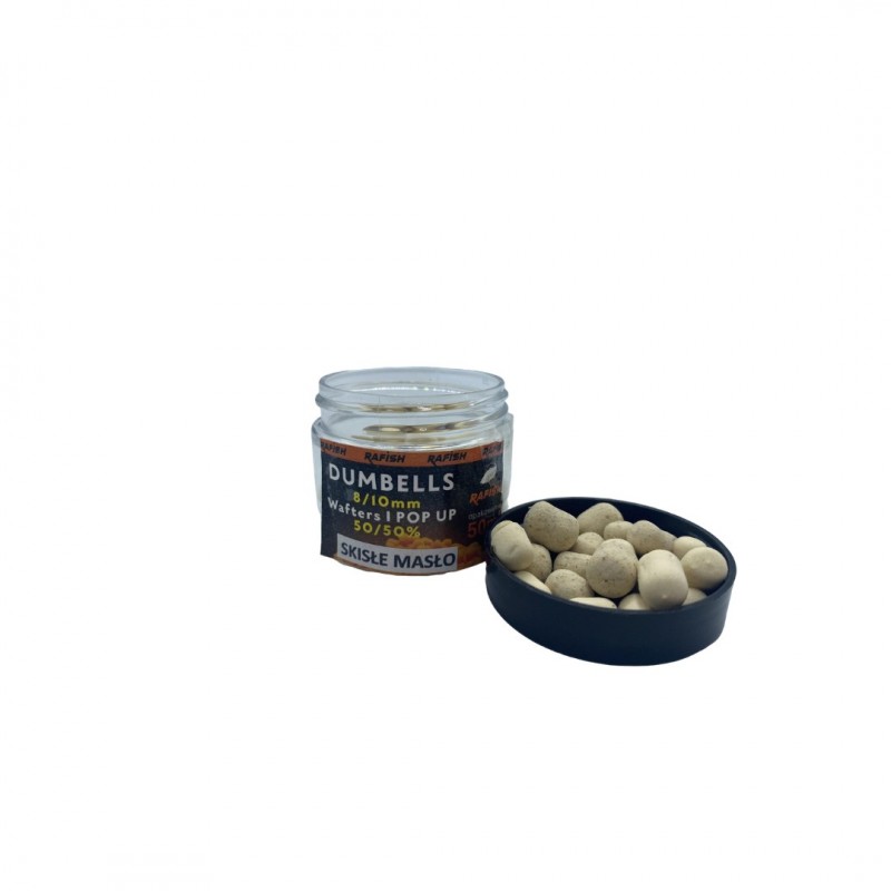 Dumbells RaFish pop up został specjalnie stworzony tak, aby jak najmocniej wyeksponować na szczycie podajnika przynętę do method feeder. Dzięki bardzo intensywnym aromatom, które się z niego wydobywają jest chętnie pobierany przez żerujące w łowisku ryby. Wyraziste kolory fluo oraz szeroka gama smaków pozwoli nam dopasować swoją przynętę do zmieniających się warunków nad wodą. Często zmiana koloru przynęty jest kluczem do sukcesu w Method Feeder