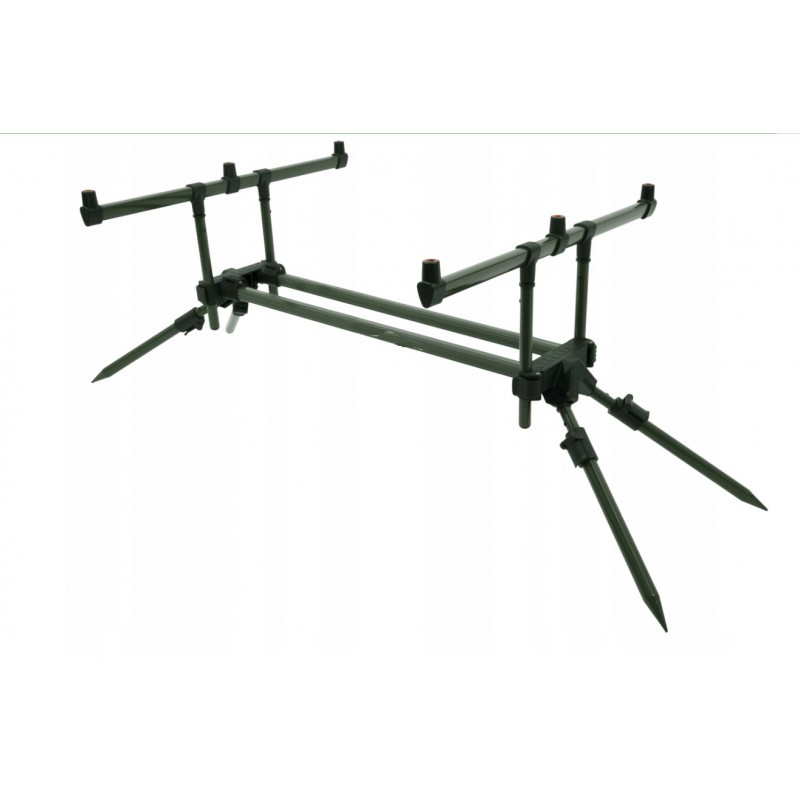 stabilny stojak zbudowany na podwójnej ramie połączonej z teleskopowymi nóżkami i buzzbarami na 3 wędki. Świetny wybór dla wędkarzy ceniących sobie funkcjonalność w atrakcyjnej cenie.